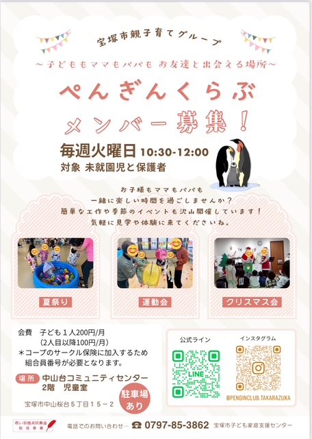 | ぺンギンくらぶ | 毎週火曜日 | 中山台コミュニティセンター |