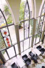 ステンドグラスを通して差し込むやわらかい日差しの中で仲間と語らい、ピアノの音色が癒しと心にゆとりをもたらしホッとしたひとときが過ごせます。