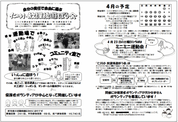 各校区の放課後子ども教室開催日は、学校を通じて子どもたちが持ち帰る「おたより」をご覧ください。