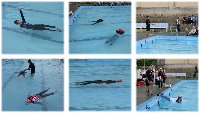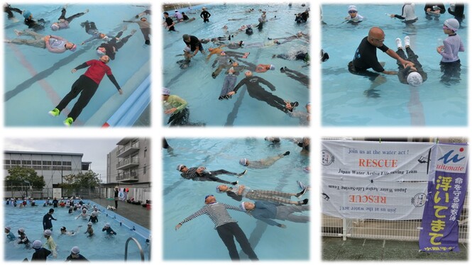 最後の週は「着衣水泳週間」とし、日本水難学会の先生をゲストティーチャーにお迎えしました。子どもたちは、もし水に落ちてしまったときにどうすれば命を守れるのかを実際に体験しながら学びました。特に「背浮き」を通して、自分の体を落ち着かせ、助けが来るまで浮いて待つ大切さを理解することができました。