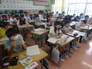 5年2組の図工。新しい材料が配られたところでした。どんな作品ができるか楽しみです。