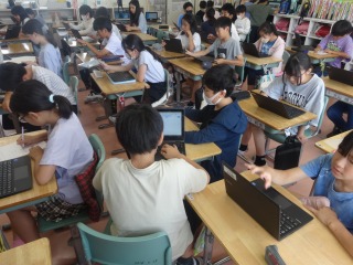3年3組はタブレットでタイピングの練習ソフトでタイピングに挑戦していました。なかなかむずかしいですね。