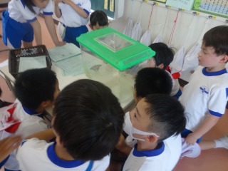 1・2年生がプールでヤゴ取りをしました。プール開き前の恒例の行事ですね。「いっぱいとれたよ」とケースを見せてくれました。