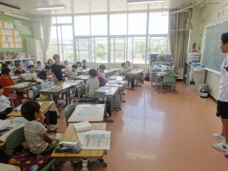 3年2組に学校で羽化したアゲハチョウが教室に来たので、代わる代わる観察しているところでした。「こんなに近くで見たのは初めて」と感動の声も聞こえてきました。