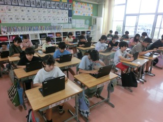 6年1組がタブレットで調べていたのは、修学旅行の行き先。場所や施設について調べていました。2週間後に修学旅行です。