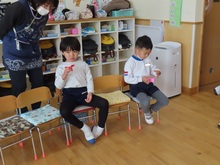 2月3日 ID 6012145 更新日 2025年2月4日 印刷大きな文字で印刷 おには~そと!ふくは~うち! 今年は、2月2日が節分でした!幼稚園でもみんなで豆まきをしましたよ!いちご組の子どもたちは、手作りお面を付けて「おこりんぼおには~そと!」「好き嫌いおにさんは~そと!」と、心の中にいる鬼を退治しました!福はたくさん呼び込んでふわふわの気持ちになりました。4、5歳児は、自分の年+1個の豆を食べました✨これで心も体も強くなって過ごせるといいね♪