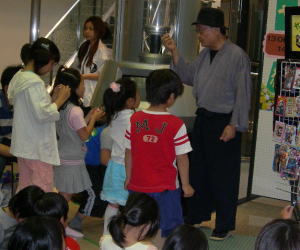 安野さんオリジナルのクイズや、水あめ・カタヌキセットも大人気。昔なつかしい紙しばいの会を大勢が楽しみました。